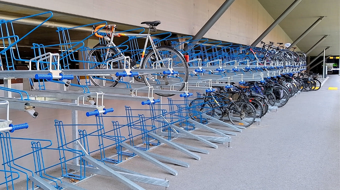 Cette solution de stationnement séduit par son design intelligent et sa grande facilité d’utilisation, adaptée aux besoins des cyclistes et des vélos. Sur les deux niveaux, l’arrangement en profondeur/en hauteur permet une utilisation compacte des emplacements, sans compromettre le confort: des espacements généreux entre les vélos empêchent les guidons de s’accrocher, même ceux qui sont larges et avec des selles hautes. Un système de ressorts à gaz intégré permet de soulever le vélo à l’étage supérieur sans effort et en douceur, à une hauteur de prise confortable. Le support stable de roue avant assure un maintien sûr, tandis que l’arceau de fixation permet de verrouiller le vélo facilement et de manière sécurisée.